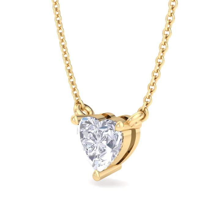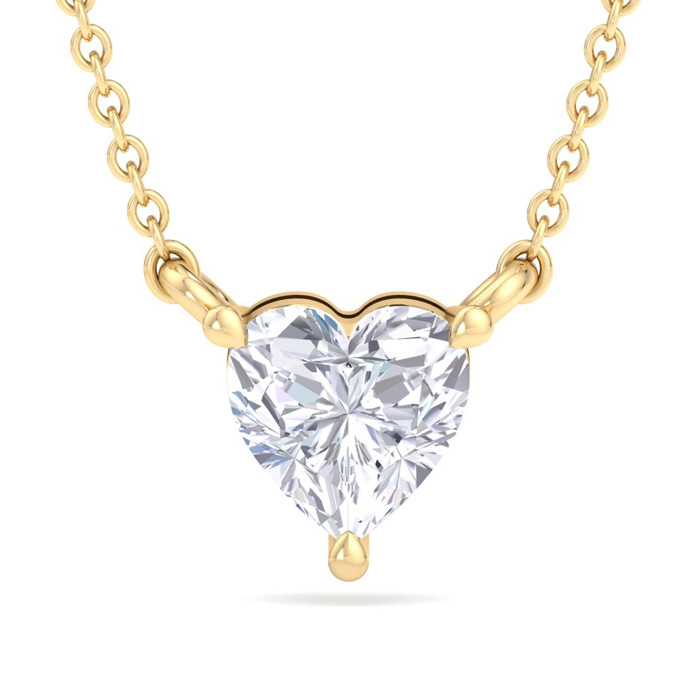 1/2 Carat Heart Shape Lab Grown Diamond Solitaire Necklace In 14 Karat Yellow Gold