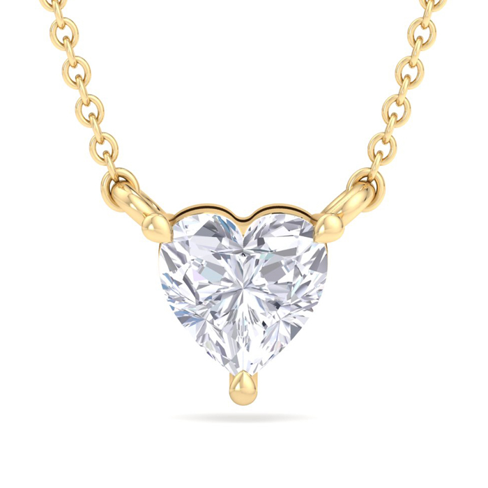 1/2 Carat Heart Shape Lab Grown Diamond Solitaire Necklace In 14K Yellow Gold Over Sterling Silver