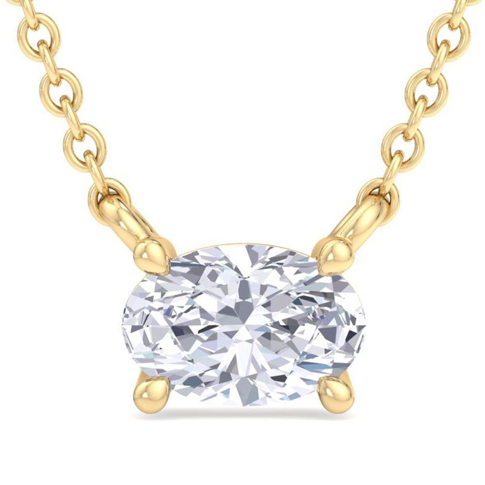 1/2 Carat Oval Shape Lab Grown Diamond Solitaire Necklace In 14 Karat Yellow Gold