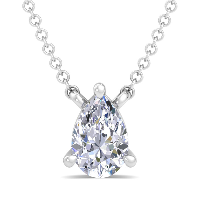 1/2 Carat Pear Shape Lab Grown Diamond Solitaire Necklace In 14 Karat White Gold