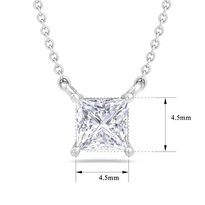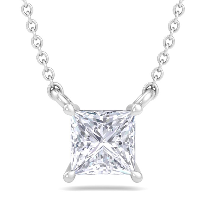 1/2 Carat Princess Cut Lab Grown Diamond Solitaire Necklace In 14 Karat White Gold