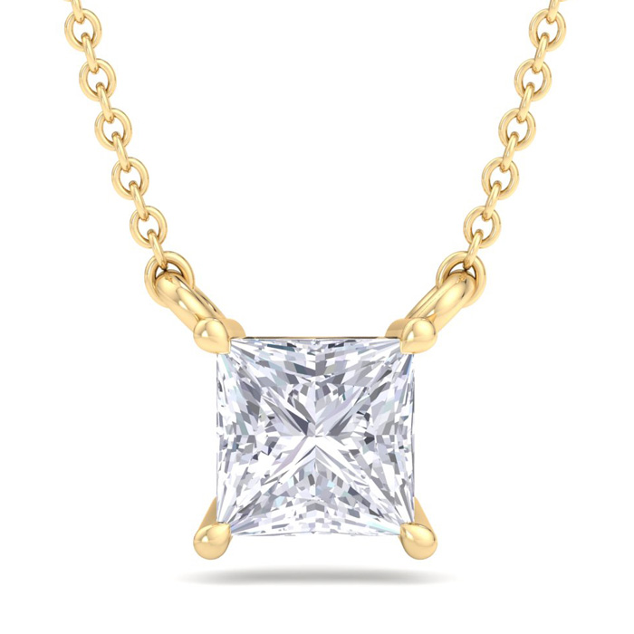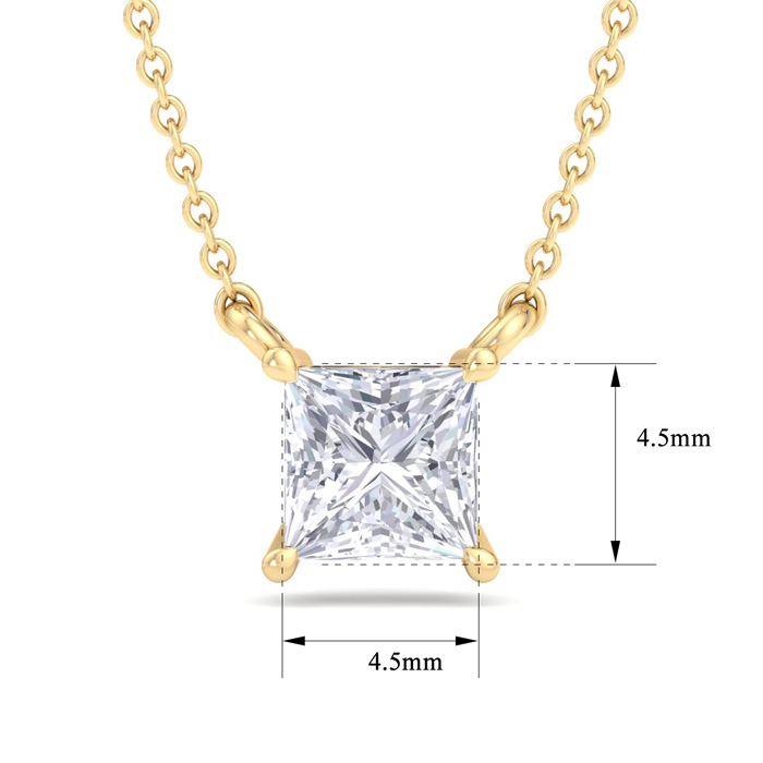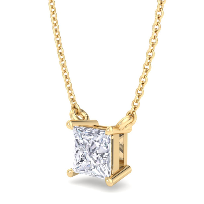 1/2 Carat Princess Cut Lab Grown Diamond Solitaire Necklace In 14 Karat Yellow Gold