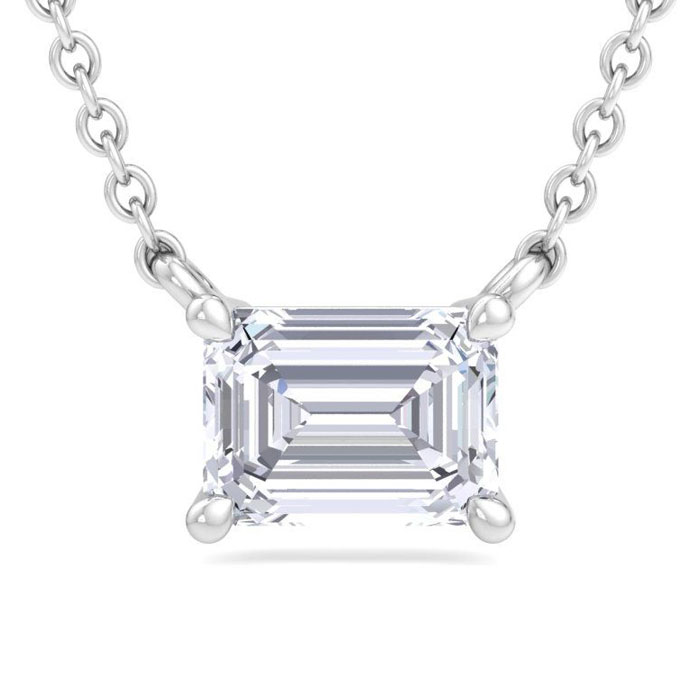 1/3 Carat Emerald Cut Lab Grown Diamond Solitaire Necklace In Sterling Silver