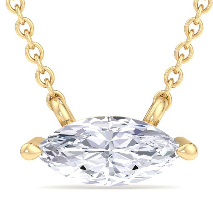 1/3 Carat Marquise Shape Lab Grown Diamond Solitaire Necklace In 14 Karat Yellow Gold