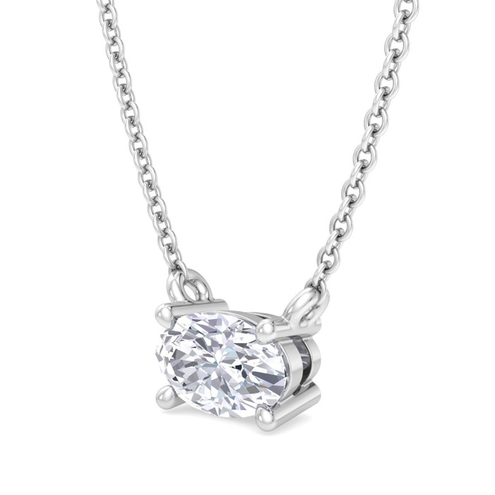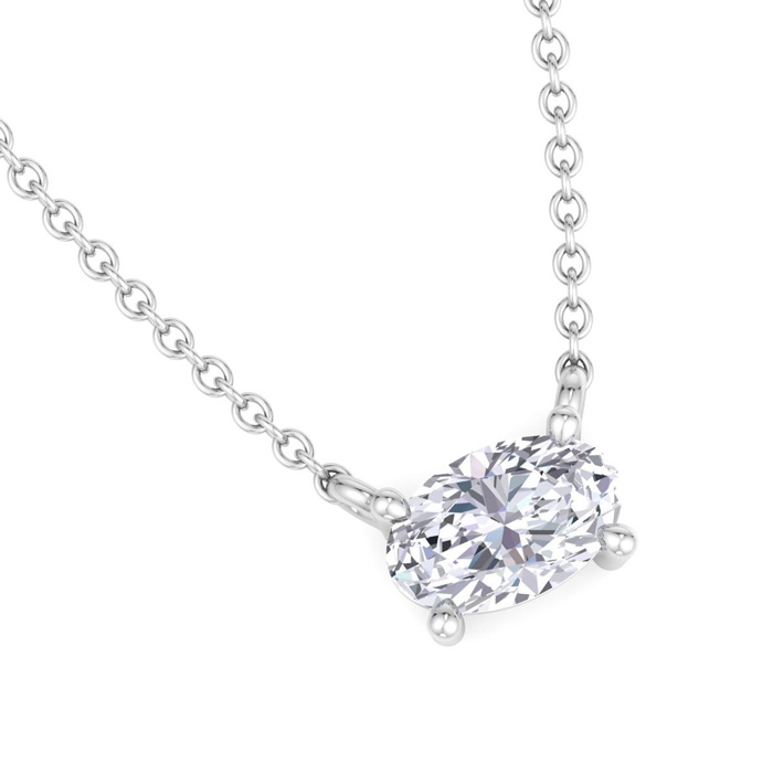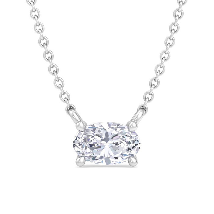 1/3 Carat Oval Shape Lab Grown Diamond Solitaire Necklace In Sterling Silver