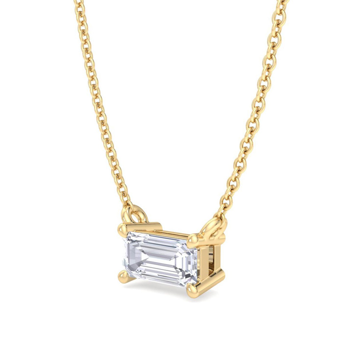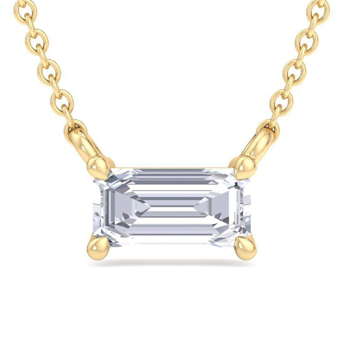 1/4 Carat Emerald Cut Lab Grown Diamond Solitaire Necklace In 14 Karat Yellow Gold