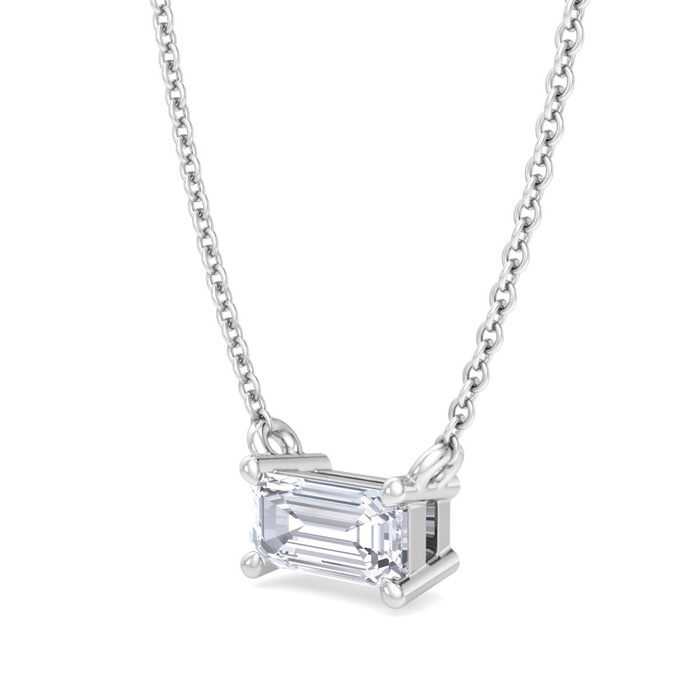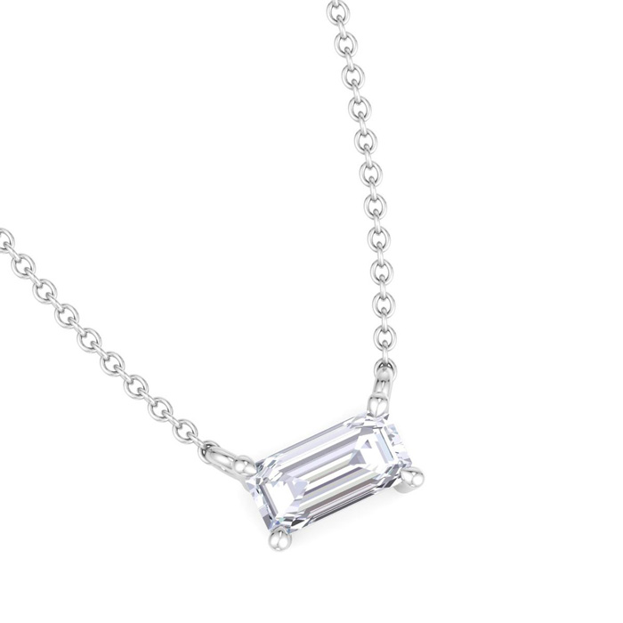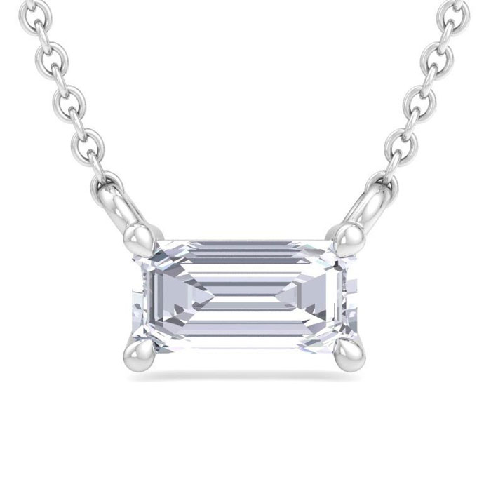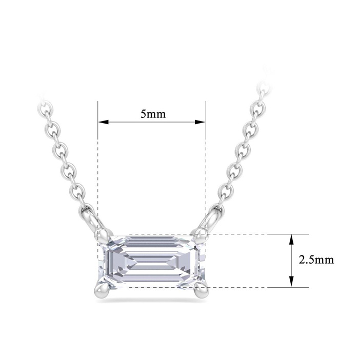 1/4 Carat Emerald Cut Lab Grown Diamond Solitaire Necklace In Sterling Silver