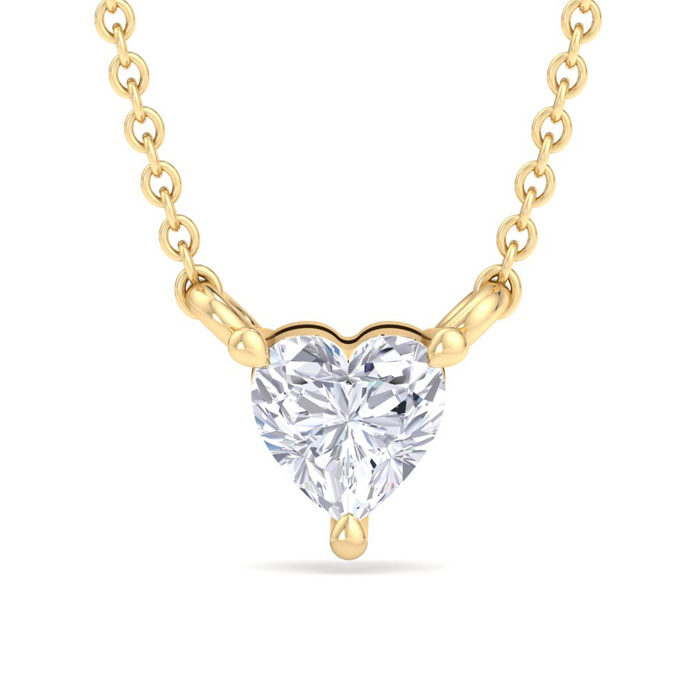 1/4 Carat Heart Shape Lab Grown Diamond Solitaire Necklace In 14 Karat Yellow Gold