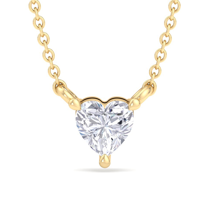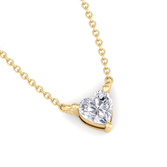 1/4 Carat Heart Shape Lab Grown Diamond Solitaire Necklace In 14K Yellow Gold Over Sterling Silver