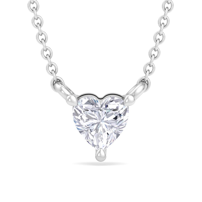 1/4 Carat Heart Shape Lab Grown Diamond Solitaire Necklace In Sterling Silver