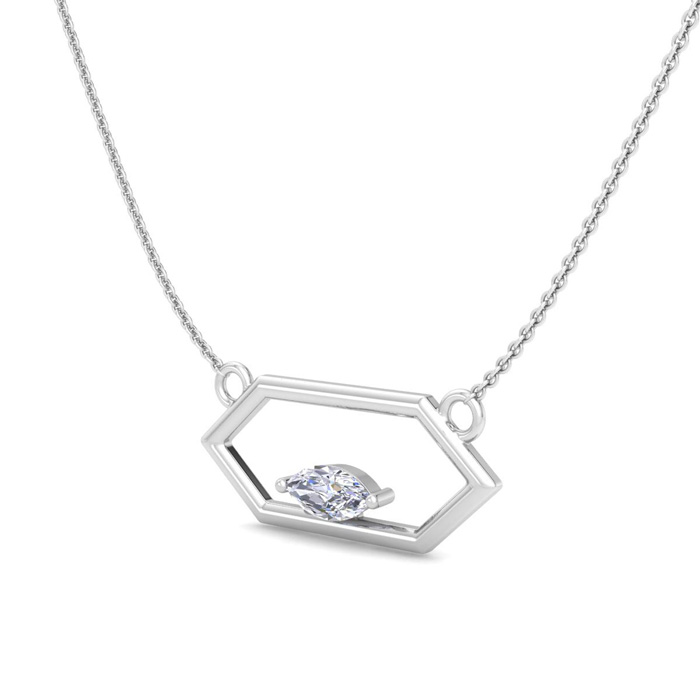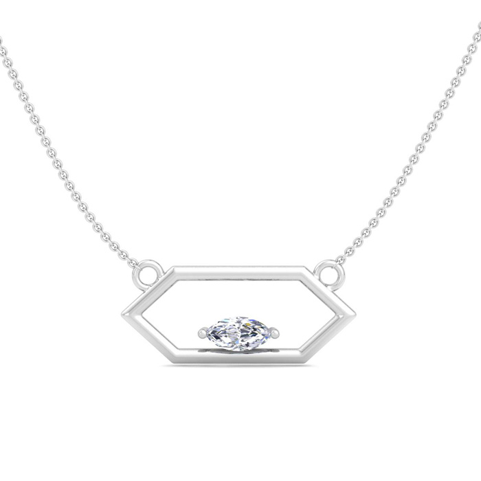1/4 Carat Marquise Shape Lab Grown Diamond Necklace In 14K White Gold, 18 Inches
