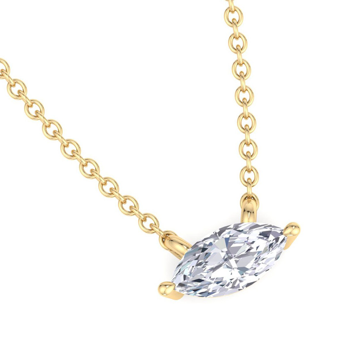 1/4 Carat Marquise Shape Lab Grown Diamond Solitaire Necklace In 14K Yellow Gold Over Sterling Silver