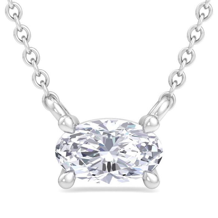 1/4 Carat Oval Shape Lab Grown Diamond Solitaire Necklace In 14 Karat White Gold