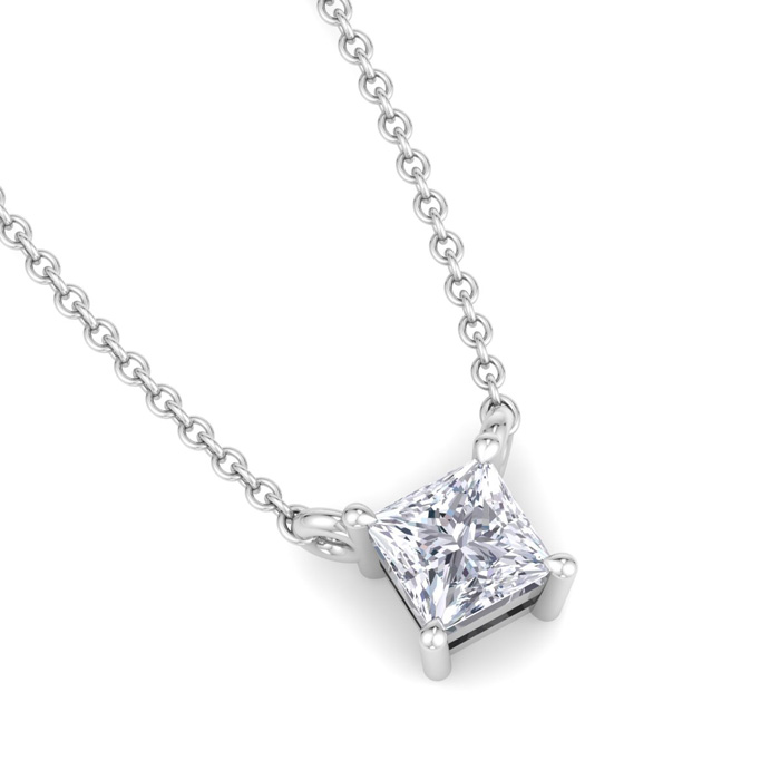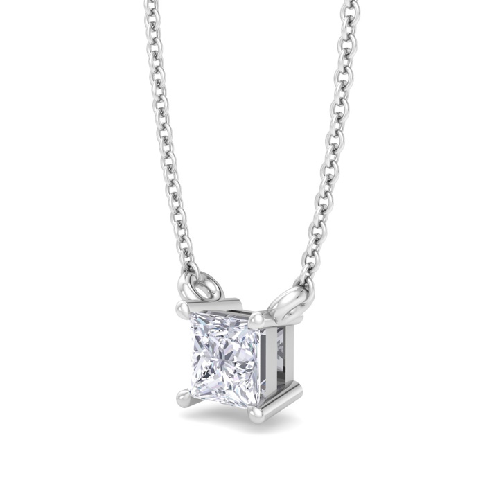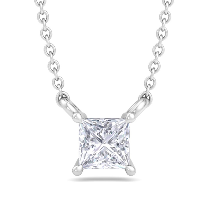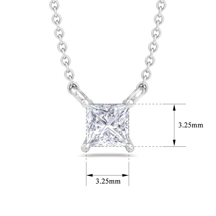 1/4 Carat Princess Cut Lab Grown Diamond Solitaire Necklace In Sterling Silver