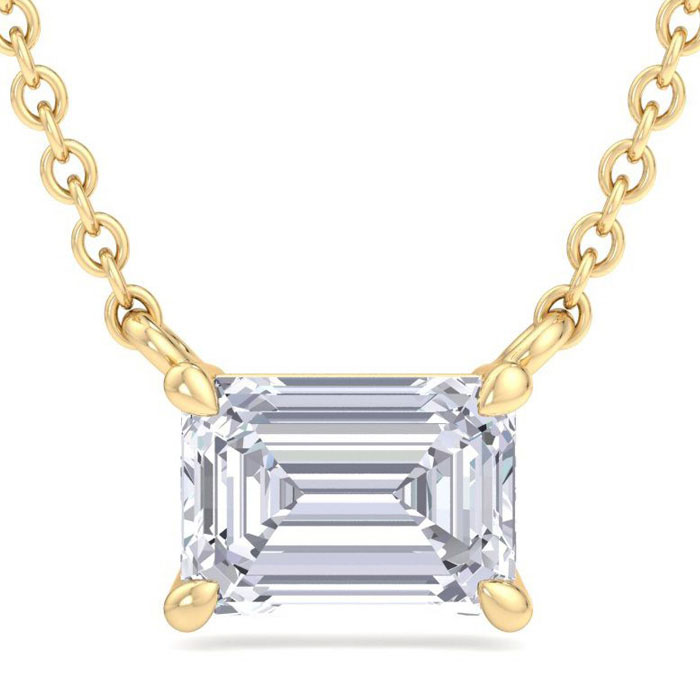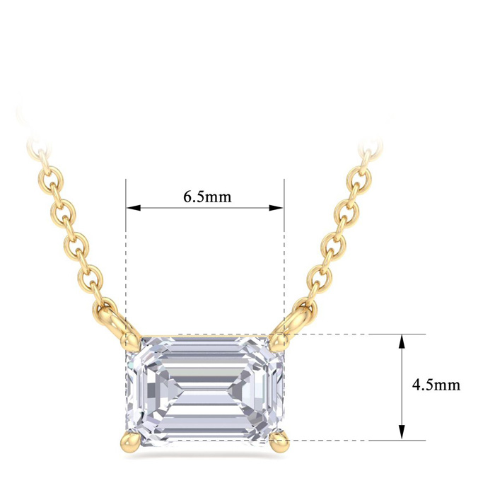1 Carat Emerald Cut Lab Grown Diamond Solitaire Necklace In 14K Yellow Gold Over Sterling Silver