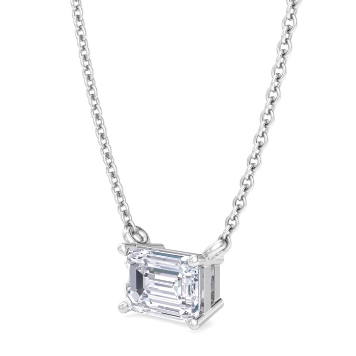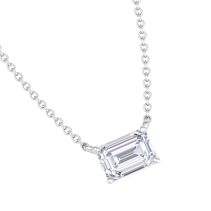 1 Carat Emerald Cut Lab Grown Diamond Solitaire Necklace In Sterling Silver