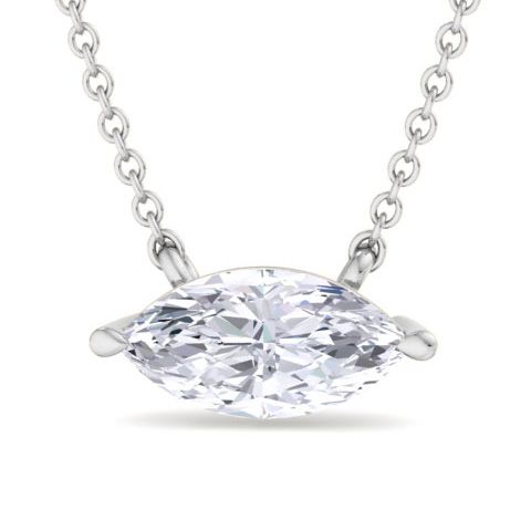 1 Carat Marquise Shape Lab Grown Diamond Solitaire Necklace In 14 Karat White Gold