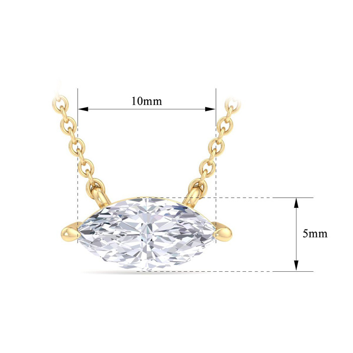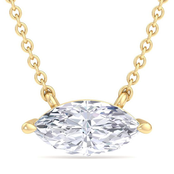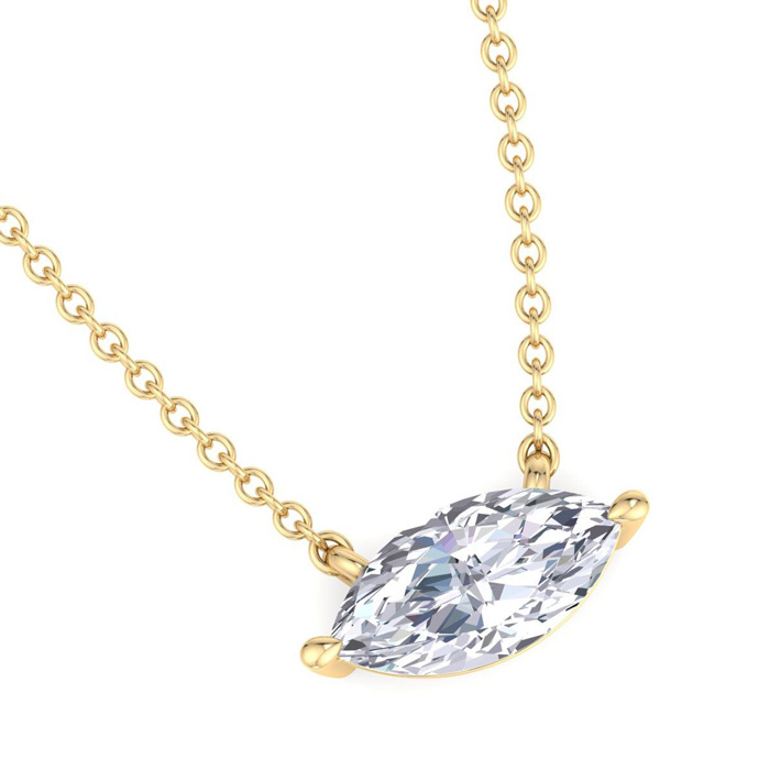 1 Carat Marquise Shape Lab Grown Diamond Solitaire Necklace In 14 Karat Yellow Gold