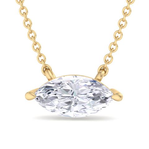 1 Carat Marquise Shape Lab Grown Diamond Solitaire Necklace In 14 Karat Yellow Gold