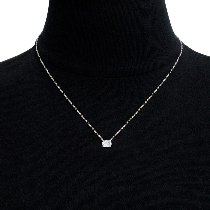 1 Carat Oval Shape Lab Grown Diamond Solitaire Necklace In 14 Karat White Gold