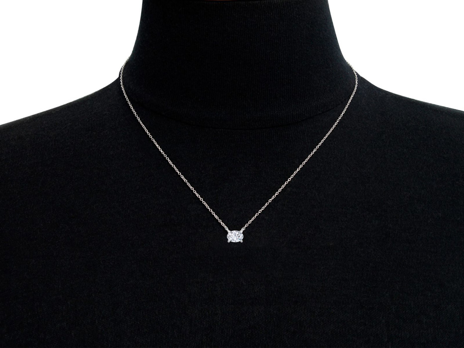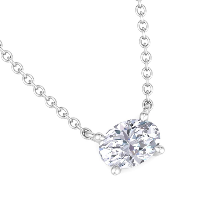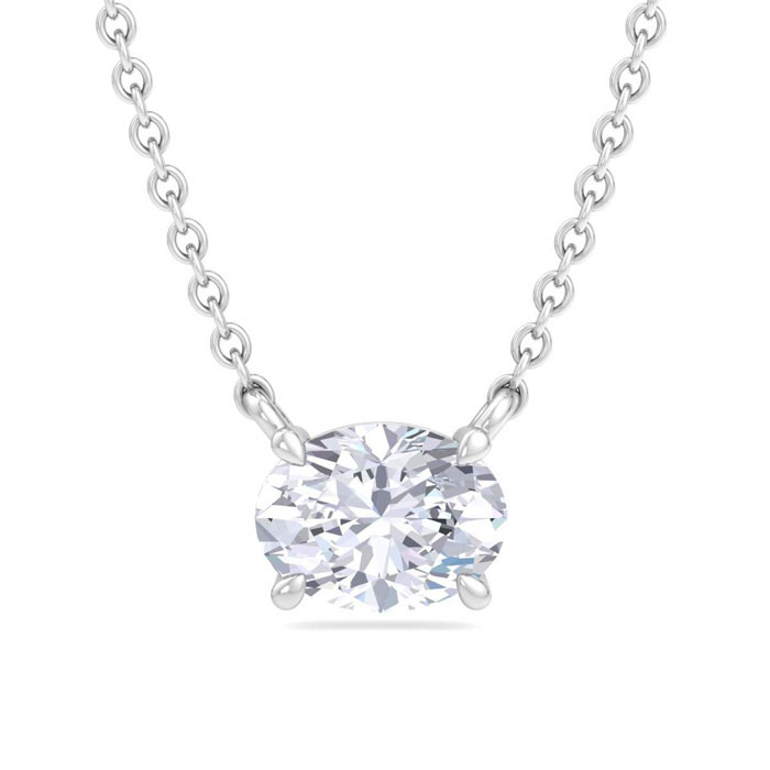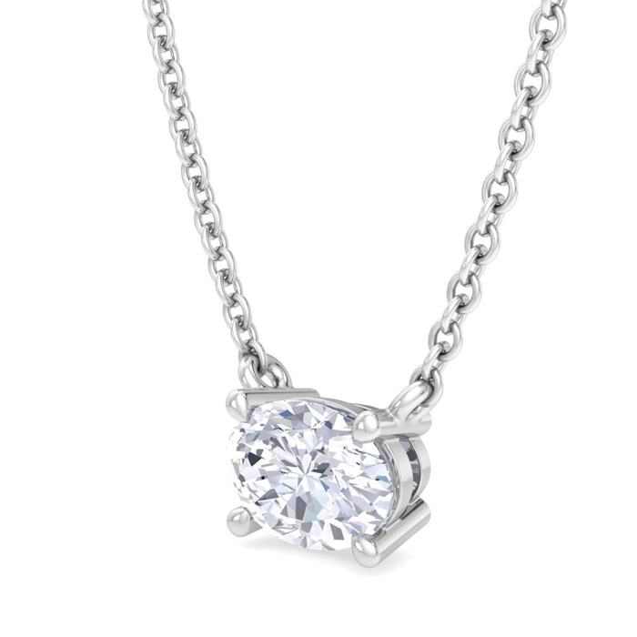 1 Carat Oval Shape Lab Grown Diamond Solitaire Necklace In Sterling Silver