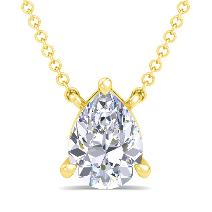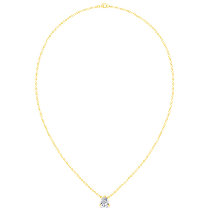 1 Carat Pear Shape Lab Grown Diamond Solitaire Necklace In 14 Karat Yellow Gold