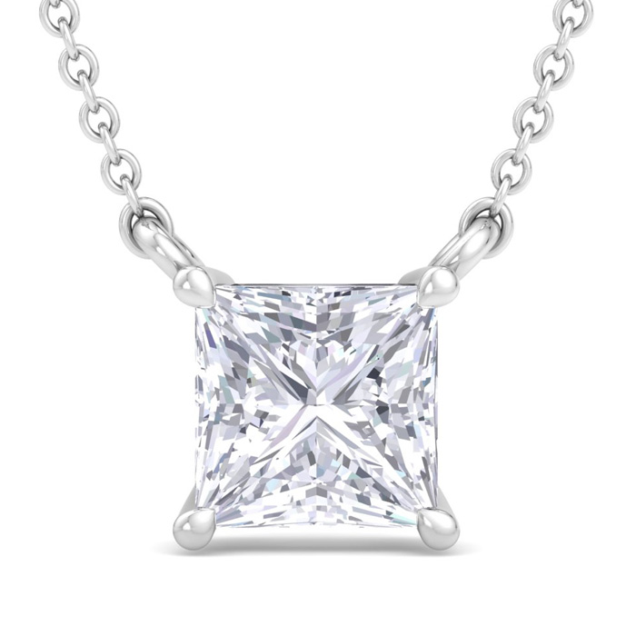 1 Carat Princess Cut Lab Grown Diamond Solitaire Necklace In 14 Karat White Gold