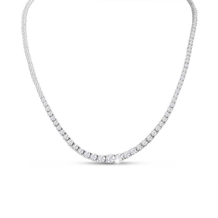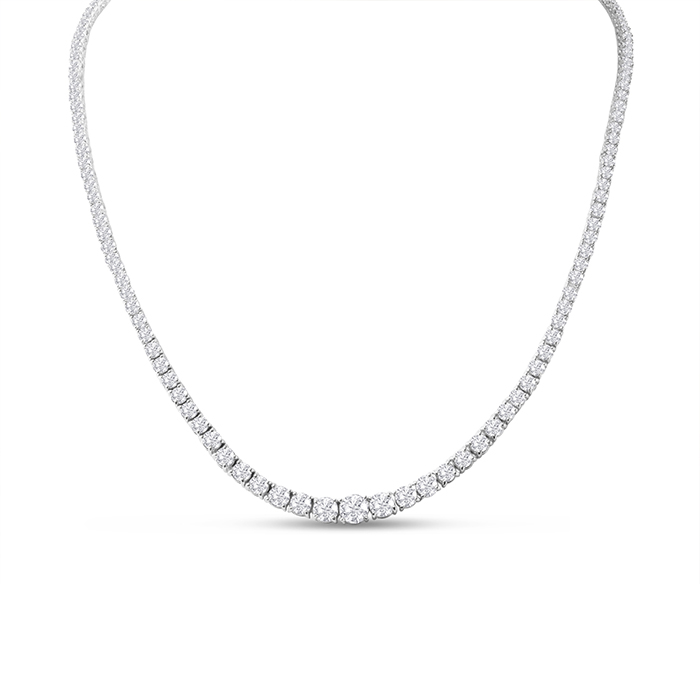 12 Carat Graduated Diamond Tennis Necklace In 14 Karat White Gold