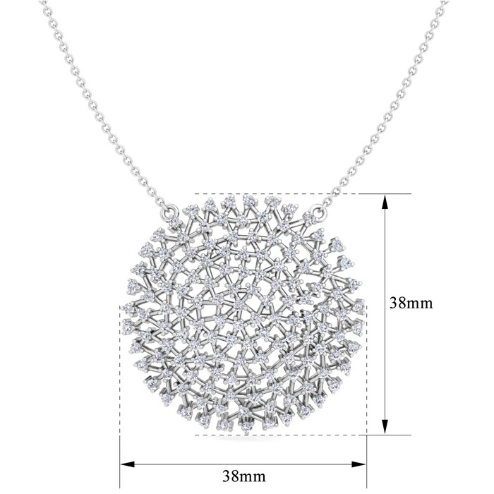 This amazing lab grown diamond necklace features 134 lab grown diamonds totaling 2 1/2 carats. Lab grown diamonds are in G-H color, VS clarity. This necklace is in sterling silver and has a cable chain with a lobster-claw clasp that adjusts from 15-17 inches.