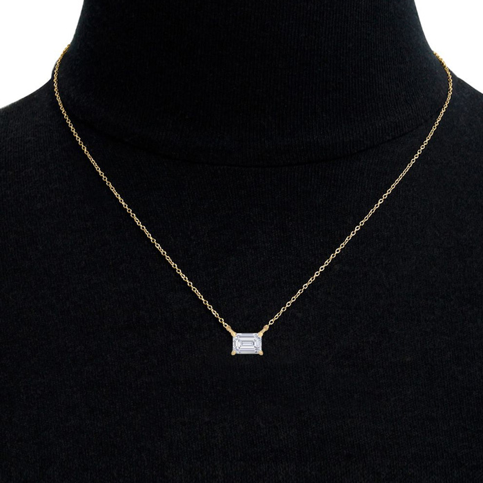 2 Carat Emerald Cut Lab Grown Diamond Solitaire Necklace In 14 Karat Yellow Gold