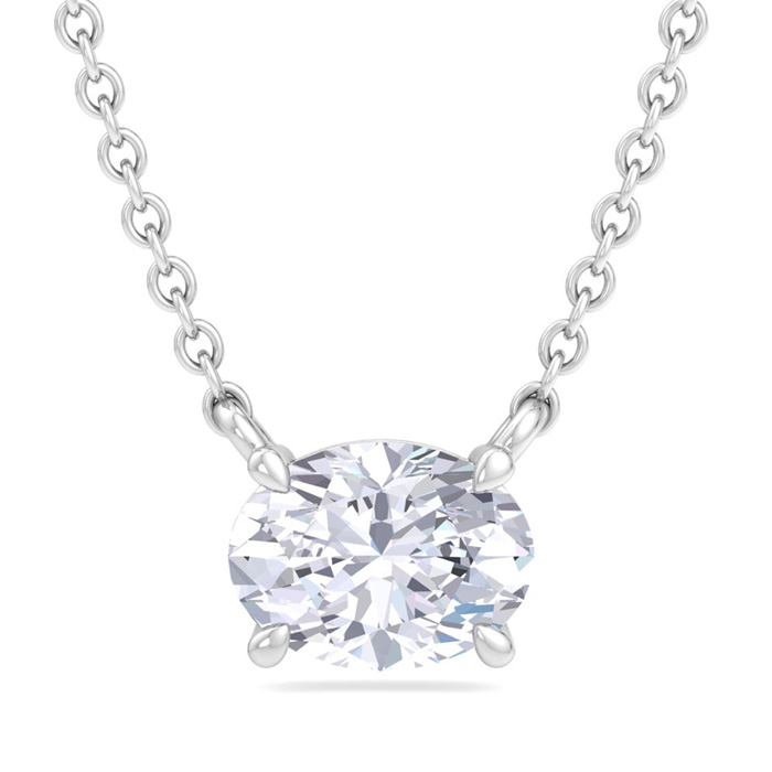 2 Carat Oval Shape Lab Grown Diamond Solitaire Necklace In 14 Karat White Gold