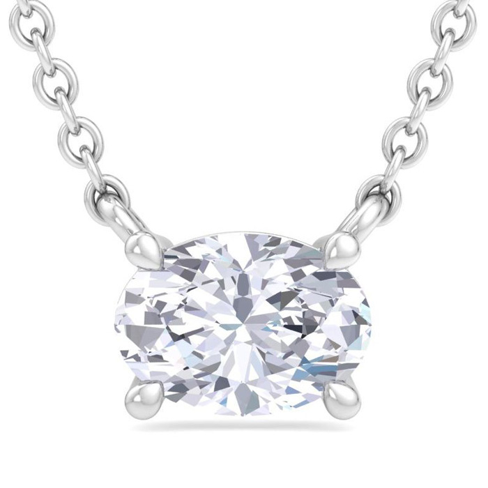 3/4 Carat Oval Shape Lab Grown Diamond Solitaire Necklace In 14 Karat White Gold
