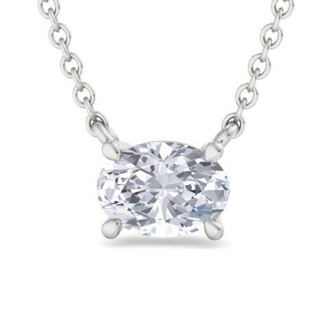 3/4 Carat Oval Shape Lab Grown Diamond Solitaire Necklace In 14 Karat White Gold
