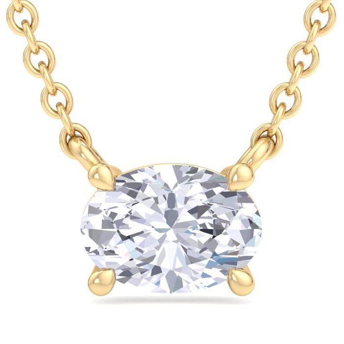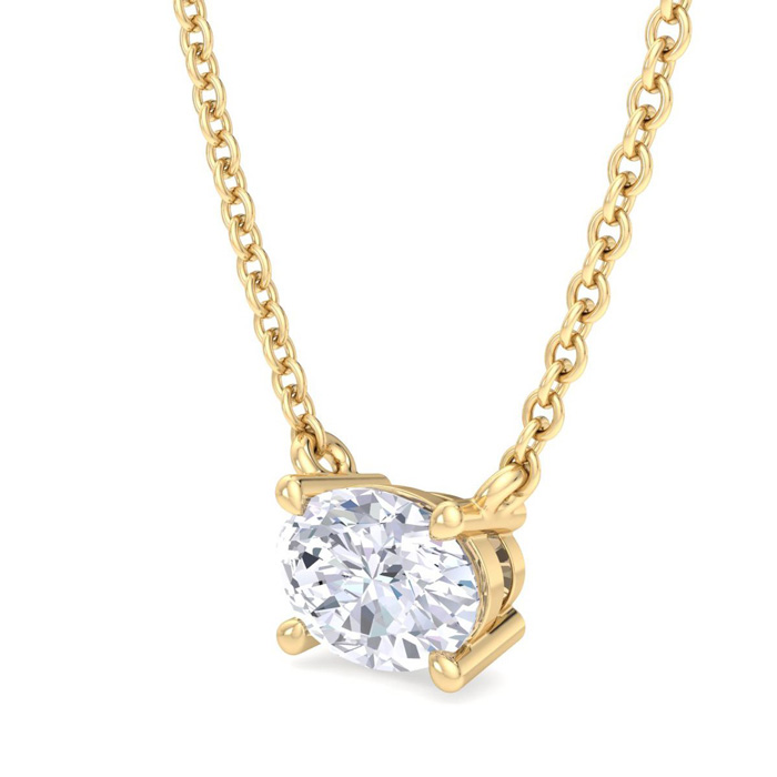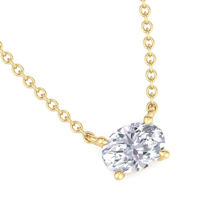 3/4 Carat Oval Shape Lab Grown Diamond Solitaire Necklace In 14 Karat Yellow Gold