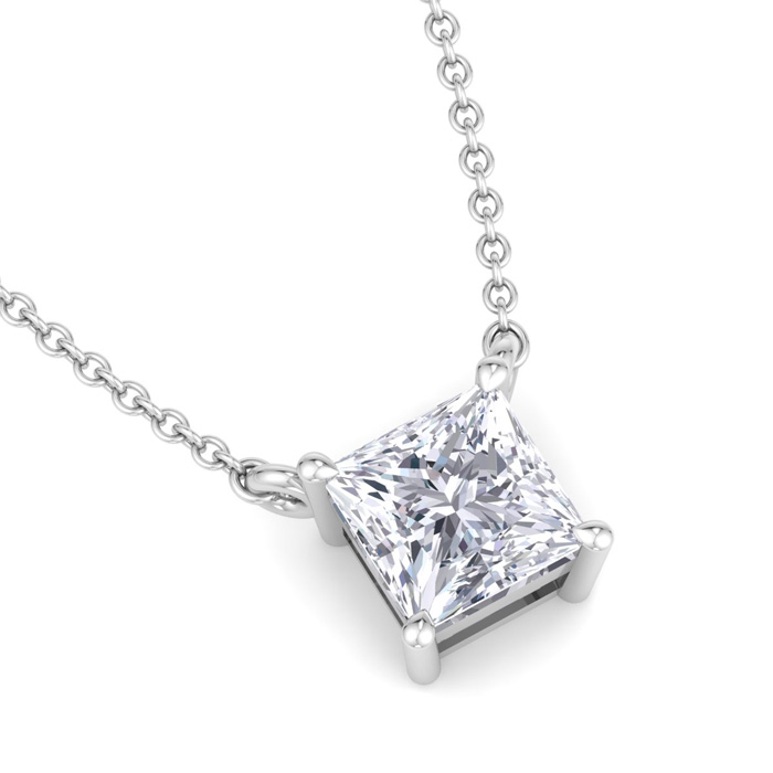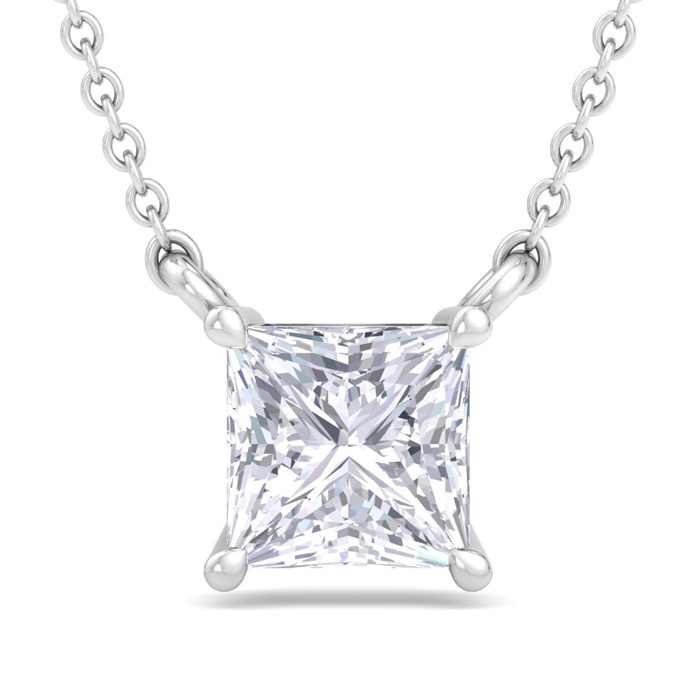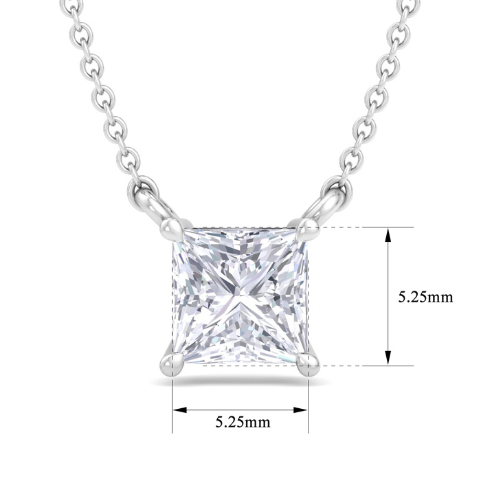 3/4 Carat Princess Cut Lab Grown Diamond Solitaire Necklace In 14 Karat White Gold