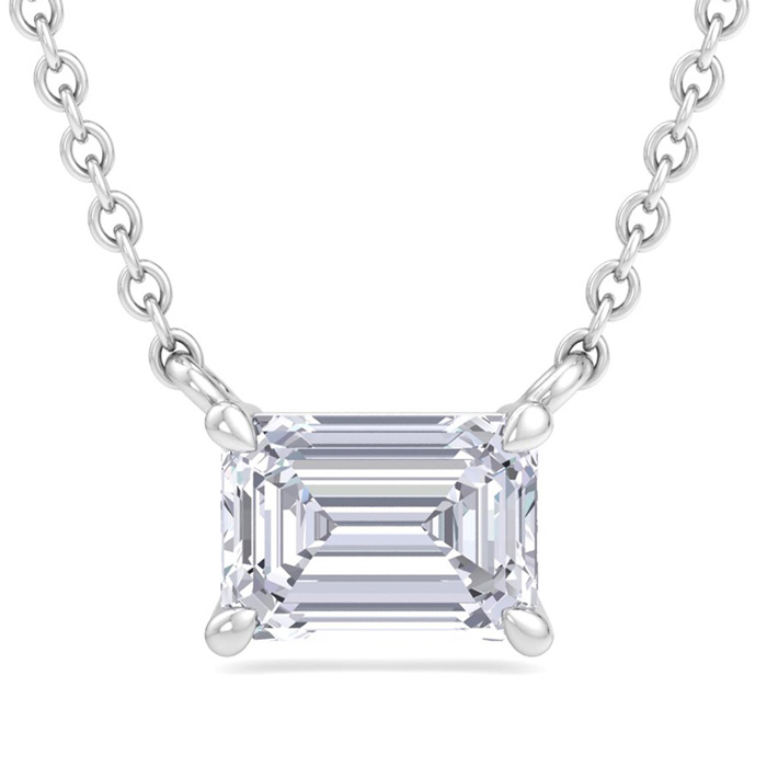 3 Carat Emerald Cut Lab Grown Diamond Solitaire Necklace In 14 Karat White Gold