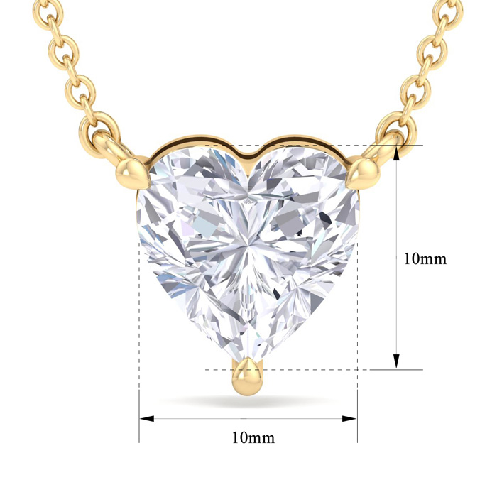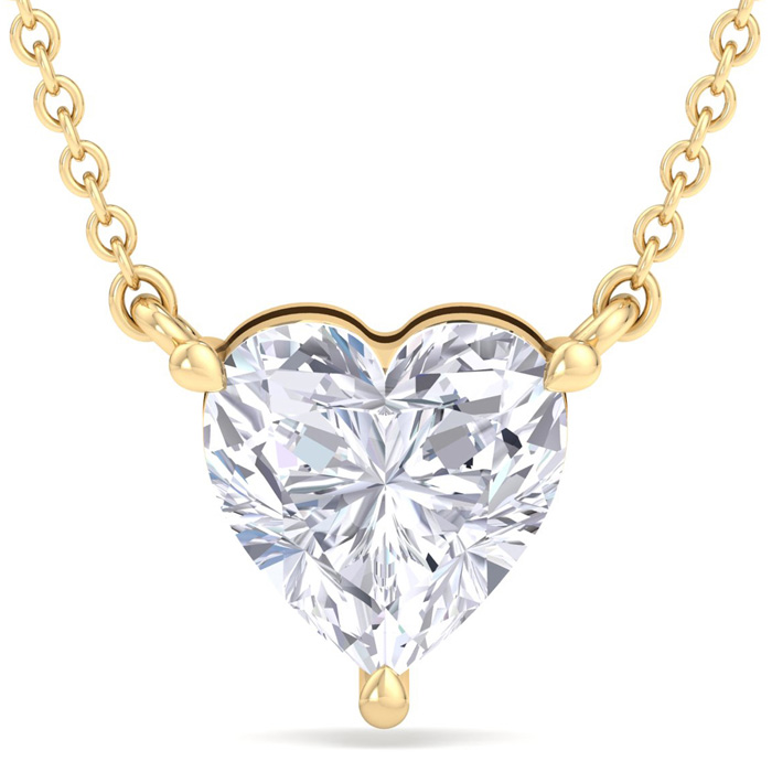 3 Carat Heart Shape Lab Grown Diamond Solitaire Necklace In 14 Karat Yellow Gold