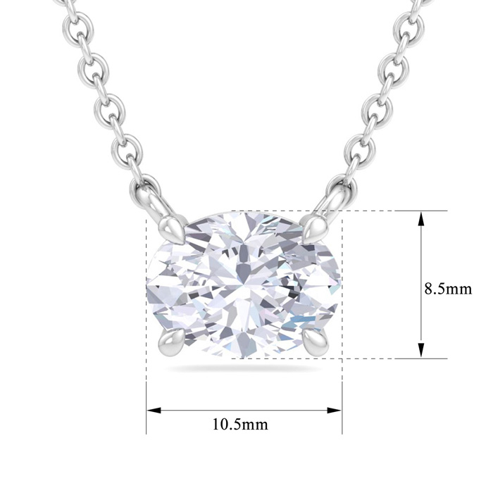 3 Carat Oval Shape Lab Grown Diamond Solitaire Necklace In 14 Karat White Gold