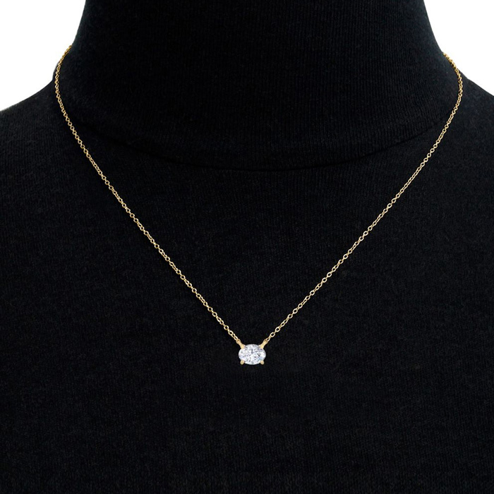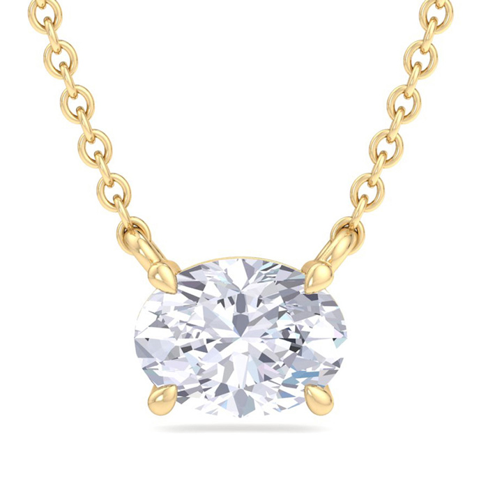 3 Carat Oval Shape Lab Grown Diamond Solitaire Necklace In 14 Karat Yellow Gold