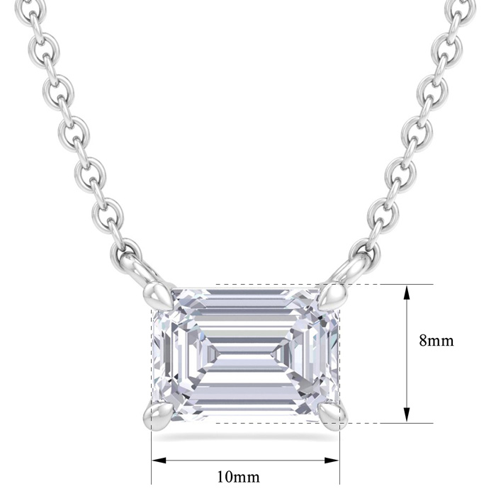 4 Carat Emerald Cut Lab Grown Diamond Solitaire Necklace In 14 Karat White Gold