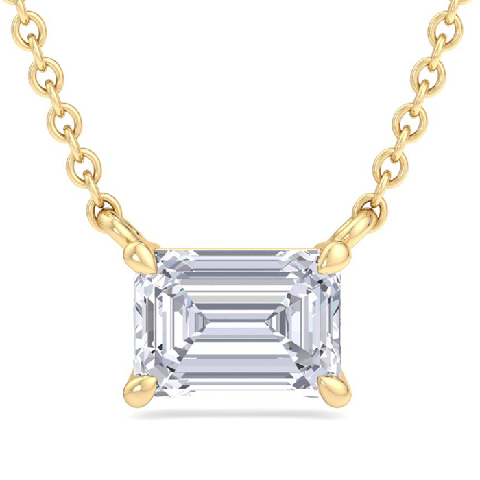 4 Carat Emerald Cut Lab Grown Diamond Solitaire Necklace In 14 Karat Yellow Gold