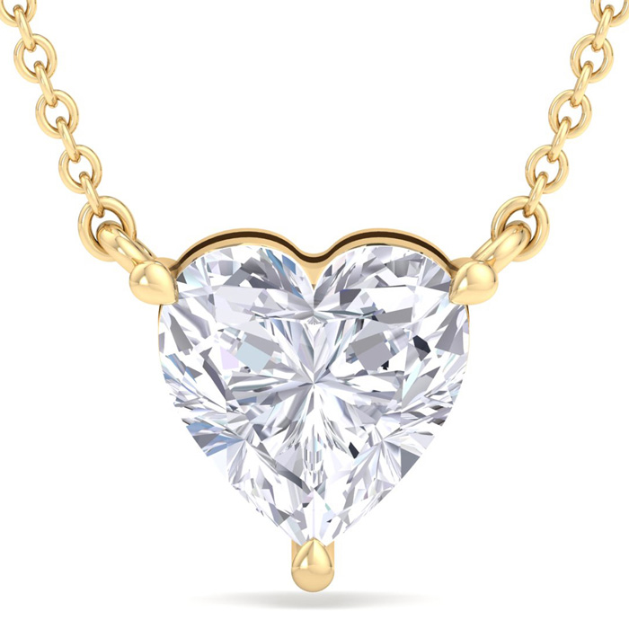 4 Carat Heart Shape Lab Grown Diamond Solitaire Necklace In 14 Karat Yellow Gold