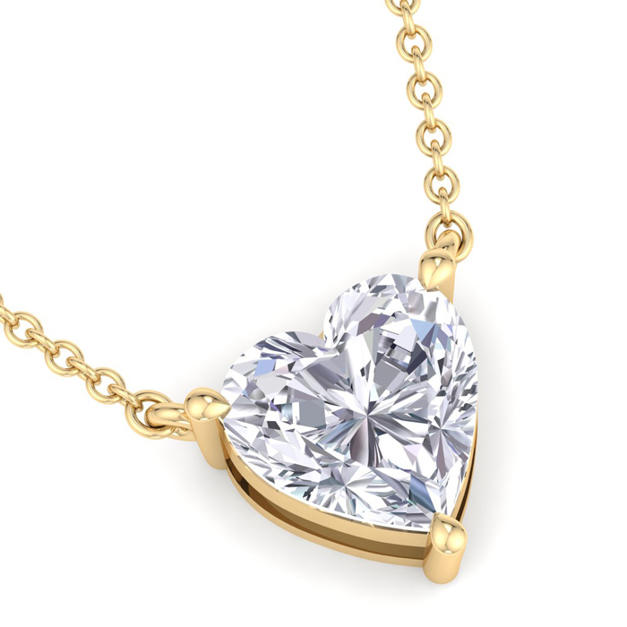 4 Carat Heart Shape Lab Grown Diamond Solitaire Necklace In 14 Karat Yellow Gold