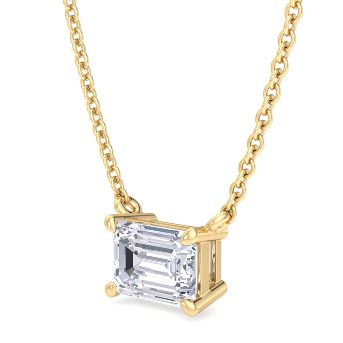 5 Carat Emerald Cut Lab Grown Diamond Solitaire Necklace In 14 Karat Yellow Gold