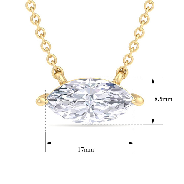 5 Carat Marquise Shape Lab Grown Diamond Solitaire Necklace In 14 Karat Yellow Gold