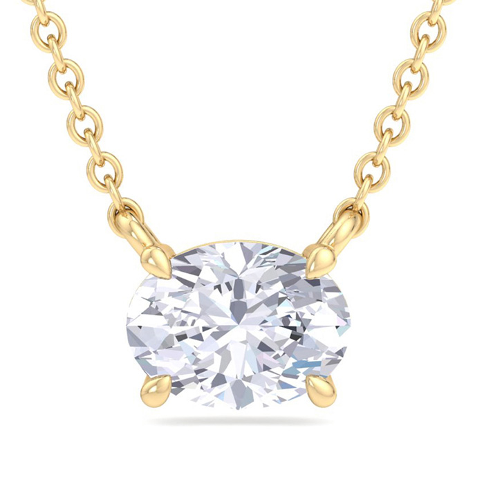 5 Carat Oval Shape Lab Grown Diamond Solitaire Necklace In 14 Karat Yellow Gold