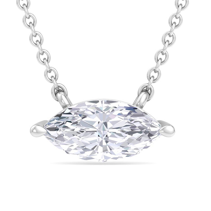 7 Carat Marquise Shape Lab Grown Diamond Solitaire Necklace In 14 Karat White Gold