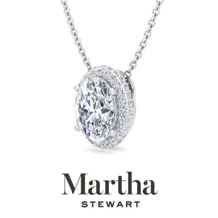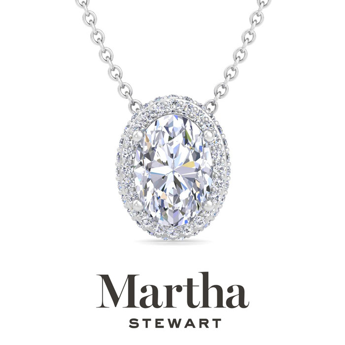 Martha Stewart 2 1/4 Carat Oval Shape Lab Grown Diamond Halo Necklace In 14K White Gold