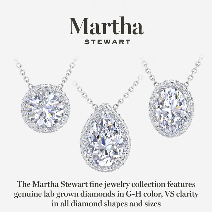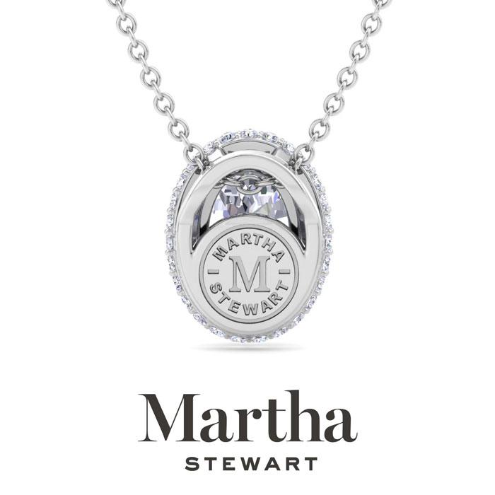 Showcasing class, style and timeless sophistication, the Martha Stewart fine jewelry collection is here to be celebrated. This Martha Stewart lab grown diamond necklace features 51 round lab grown diamonds and a two carat center oval shape lab grown diamond in G-H color, VS clarity totaling 2 1/4 carats. This necklace is in Sterling Silver. The chain is 17 inches long with options to wear at 15 and 16 inches. There is a secure lobster-claw clasp and is 1/2 inch long. Whether worn for a special occasion or to add a touch of elegance to daily wear, this necklace is sure to become a treasured heirloom. Martha Stewart’s unwavering attention to detail and dedication to quality are evident in every piece, making this collection a celebration of timeless beauty and exceptional craftsmanship.