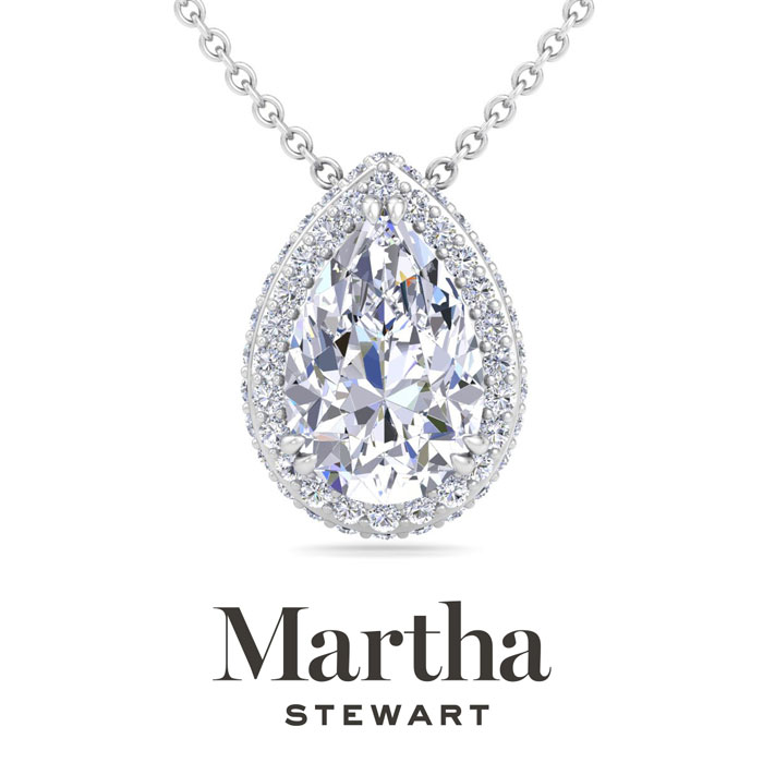 Martha Stewart 2 1/4 Carat Pear Shape Lab Grown Diamond Halo Necklace In 14K White Gold